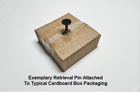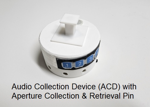 Below are examples of aperture collection and retrieval pins, one attached to a typical shipping box, an the other as part of an audio collection device. In both cases enabling retrieval and redeployment.